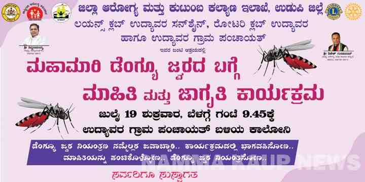 ಜುಲೈ 19 : ಉದ್ಯಾವರದಲ್ಲಿ ಡೆಂಗ್ಯೂ ಜ್ವರದ ಬಗ್ಗೆ ಮಾಹಿತಿ ಮತ್ತು ಜಾಗೃತಿ ಕಾರ್ಯಕ್ರಮ