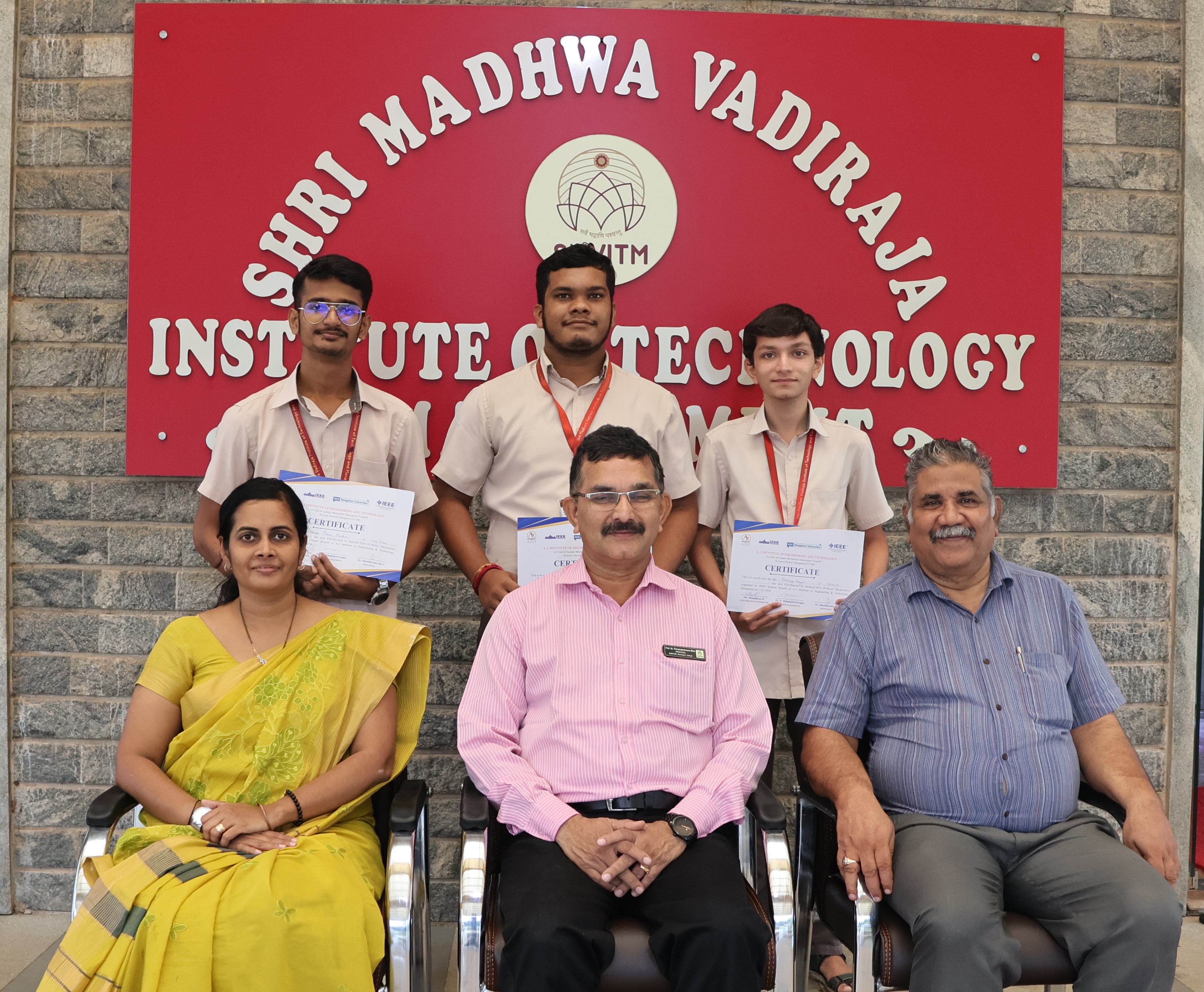 ಶಿರ್ವ : ಎ. ಜೆ. ಇನ್ಸ್ಟಿಟ್ಯೂಟ್ ಆಫ್ ಇಂಜಿನಿಯರಿಂಗ್ ಆ್ಯಂಡ್ ಟೆಕ್ನಾಲಜಿಯ ಐಇಇಇ (IEEE) ವಿದ್ಯಾರ್ಥಿ ಘಟಕವು ಜುಲೈ 13ರಂದು ಆಯೋಜಿಸಿದ್ದ “ಸಂಕಲ್ಪಾ 2024” (8 ಗಂಟೆಗಳ ಹ್ಯಾಕಥಾನ್)ದಲ್ಲಿ ಶ್ರೀ ಮಧ್ವ ವಾದಿರಾಜ ತಾಂತ್ರಿಕ ಮಹಾವಿದ್ಯಾಲಯದ ಮೂರನೇ ವರ್ಷದ ಆರ್ಟಿಫೀಶಿಯಲ್ ಇಂಟೆಲಿಜೆನ್ಸ್ ಆ್ಯಂಡ್ ಮೆಶೀನ್ ಲರ್ನಿಂಗ್ ವಿಭಾಗದ ವಿದ್ಯಾರ್ಥಿಗಳಾದ ಪ್ರಥಮ್ ಎಲ್ ಕಾಮತ್, ರಾಹುಲ್ ಮೆಂಡನ್, ಅಕ್ಷಯ್ ನಾಯಕ್ ಭಾಗವಹಿಸಿ ಪ್ರಥಮ ಸ್ಥಾನಗಳಿಸಿರುತ್ತಾರೆ.