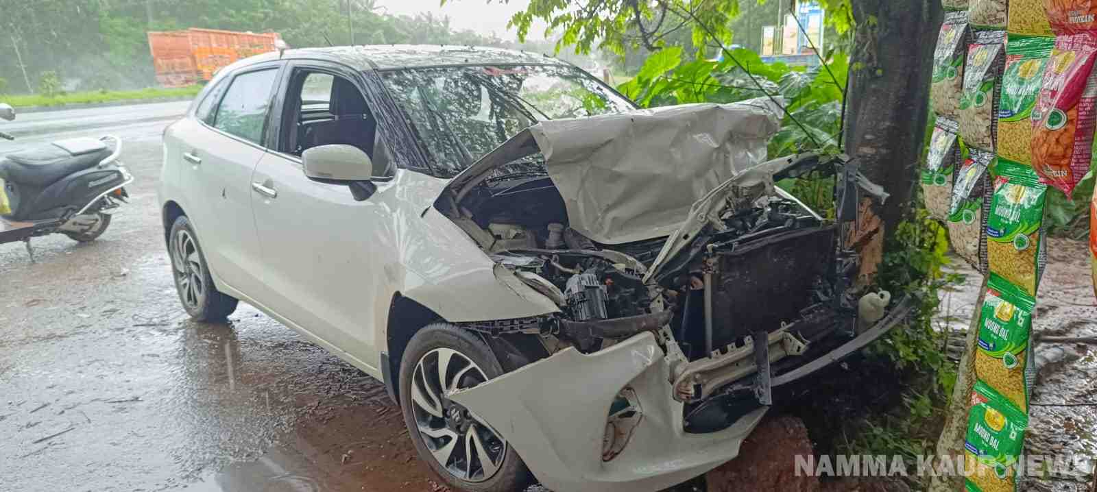 ಮೂಳೂರು - ಚಾಲಕನ ನಿಯಂತ್ರಣ ತಪ್ಪಿ ಮರಕ್ಕೆ ಡಿಕ್ಕಿ ಹೊಡೆದ ಕಾರು