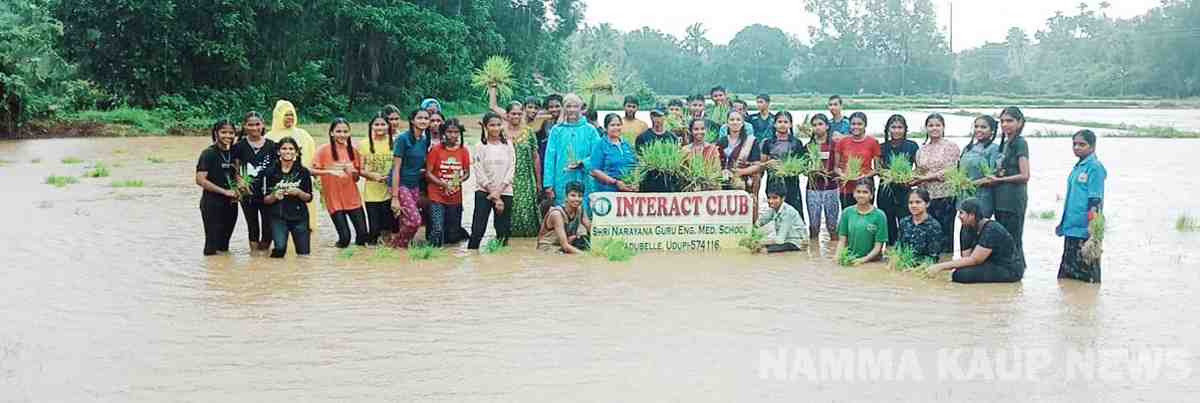 ಪಡುಬೆಳ್ಳೆ ನಾರಾಯಣಗುರು ಶಾಲೆಯ ಇಂಟರ್ಯಾಕ್ಟ್ ವಿದ್ಯಾರ್ಥಿಗಳಿಂದ ಗದ್ದೆ ನಾಟಿ ; ಕೃಷಿ ಮಾಹಿತಿ